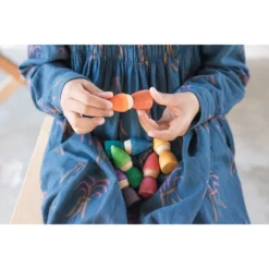 The name CLiCQUES comes from the tiny little click sound that the wooden parts make as the magnets embedded inside come together. Add more CLiCQUES Doll Sets and a Garden Set or two, then use their cardboard houses to make a pretty village scene complete with trees, mushrooms, bushes, and stones.