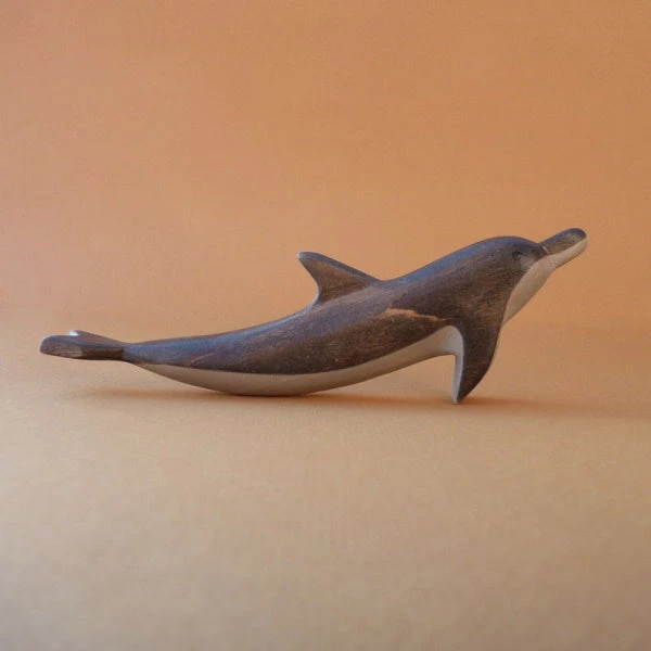 Our Forest Melody Wooden Dolphin is a playful creature with a happy little face. Her main body colour is a greyish brown, with a beige underbelly. A truly loved ocean creature. Each Forest Melody wooden animal is handmade from gorgeous, textural alder wood.