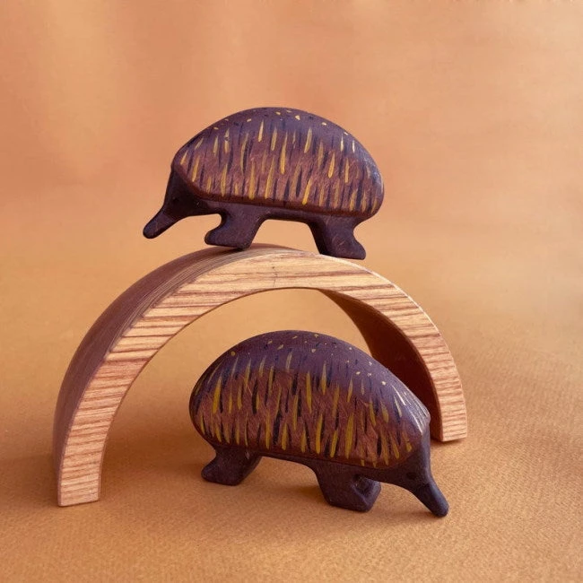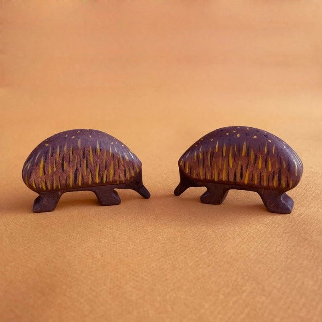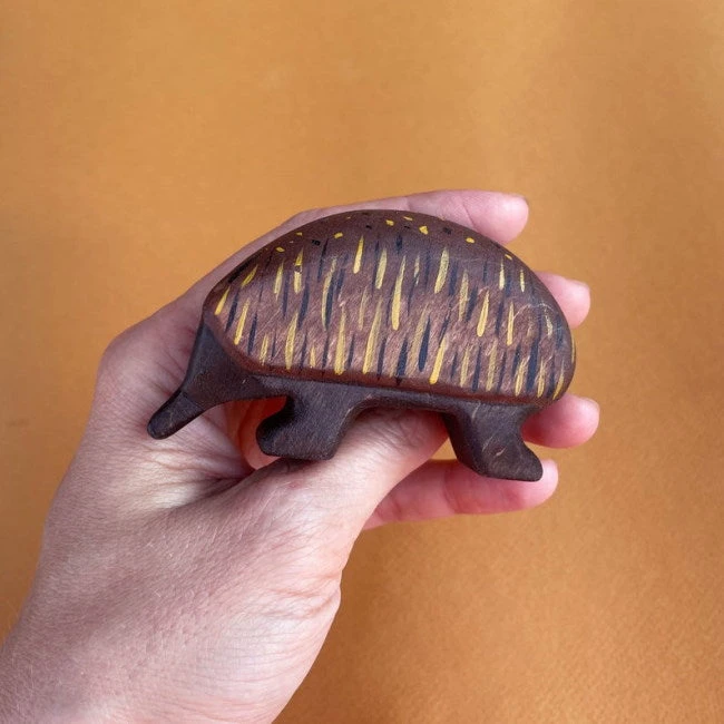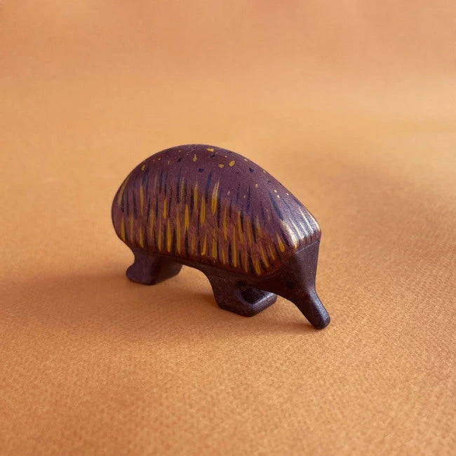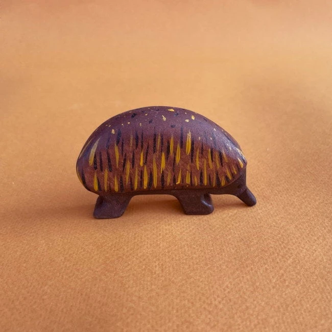 One of five new Australian animals specially created for Milk Tooth in 2021, Forest Melody’s Echidna wooden toy is chunky and beautiful. Painted primarily in a deep brown, Forest Melody have cleverly represented the Echidna’s spikes using a series of black and mustard brushstrokes and spots. Our sweet Echidna features a long snout and little black eyes. Each Forest Melody wooden animal is handmade from gorgeous, textural alder wood.