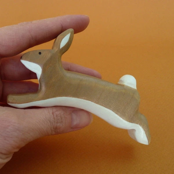 Run rabbit, run! Our Forest Melody Wooden Rabbit or Hare Running is simple and beautiful in soft brown and white. Look at its sweet powder puff of a tail. Each Forest Melody wooden animal is handmade from gorgeous, textural alder wood.