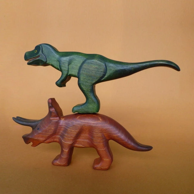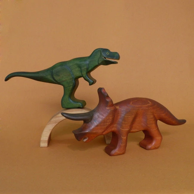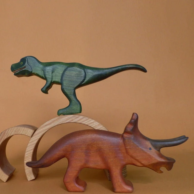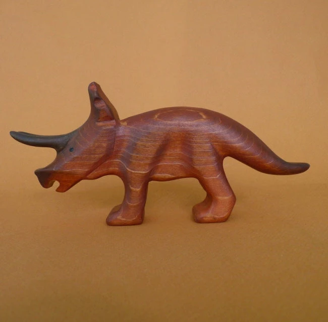 Huge and chunky and beautiful! Forest Melody’s Triceratops Wooden Dinosaur is the stuff of prehistoric playtime dreams. Our Triceratops has been handpainted primarily in a rusty brown colour that allows the beauty of the timber to shine through. The larger two of its horns are a deeper brown colour, and it boasts a lovely large bony frill across the top of its head. Triceratops was a grazing herbivore that lived during the Late Cretaceous period.
