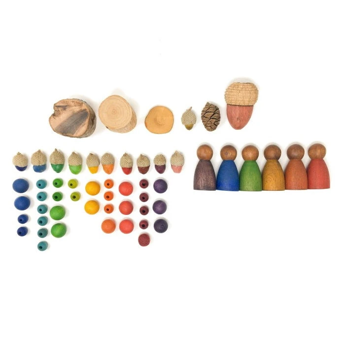 Made from natural timber with water-based colour stain, the three Nins feel beautiful in the hand and are fantastic for sensory play. The Nin wooden peg dolls are popular amongst Montessori and Waldorf minded parents, but also amongst parents who simply enjoy beautiful, natural toys that allow for educational, fun play.