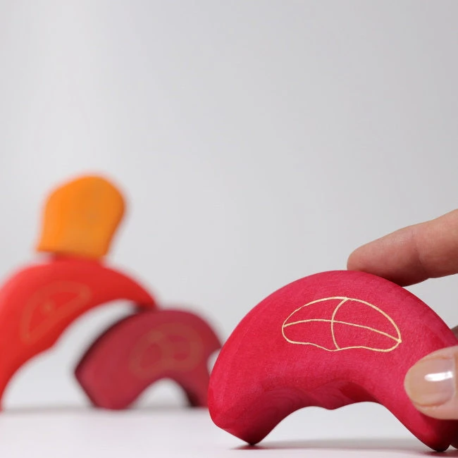 Grimm’s Gnome House comprises four wooden pieces in warm reds, orange, and yellow and curvy, organic shapes. The four blocks fit together like a puzzle to form the sweetest little home, but you can also use them in combination with other Grimm’s toys to add curves, doors, and windows.