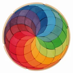 The beautiful Grimm’s Spiel Und Holz Large Colour Spiral is a set of 72 wooden blocks stained in gorgeous bright colours. The blocks form the most amazing mandala array.