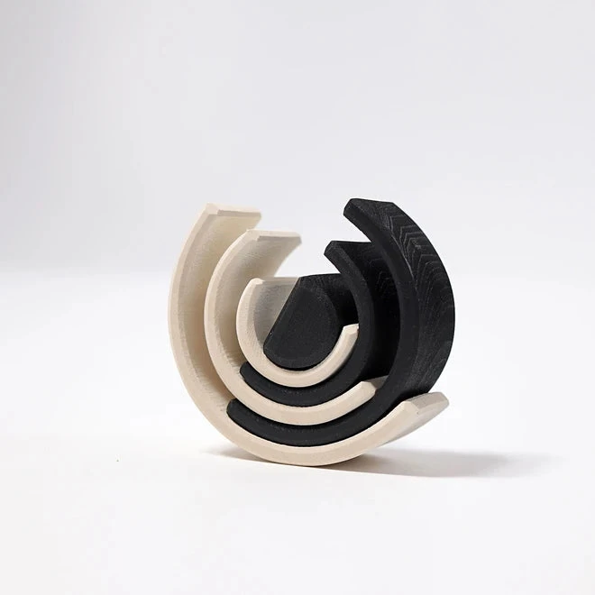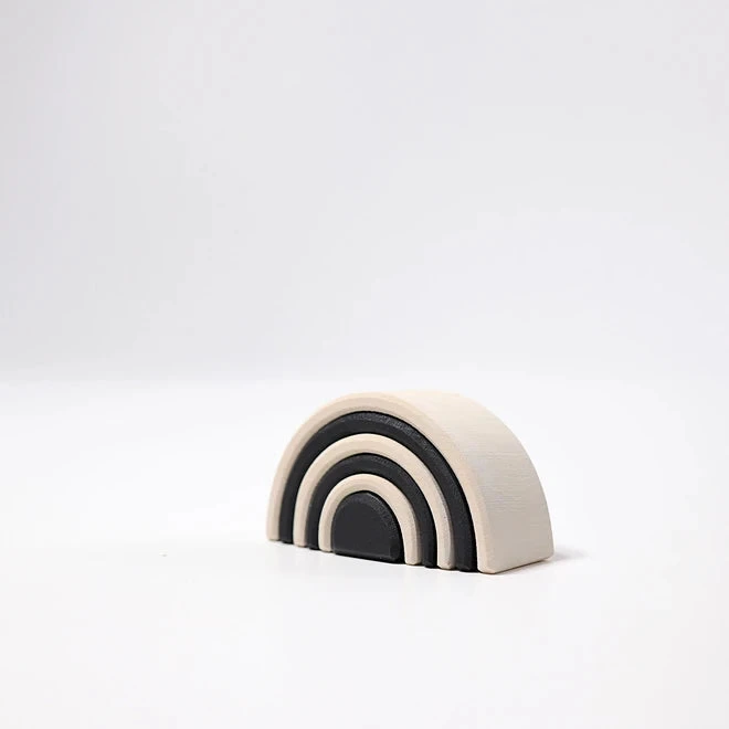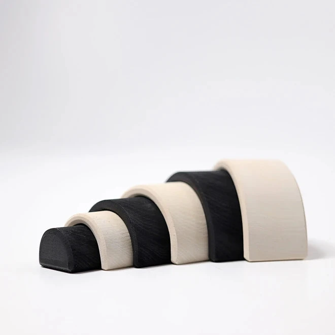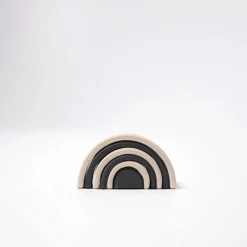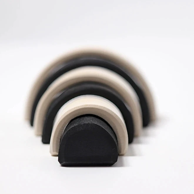 The Grimm’s Small Monochrome Rainbow provides high contrast and clean lines. It has lovey versatility as a toy, including in stacking andย small world play (it’s a rainbow, a series of roads, a bridge, a tower…)