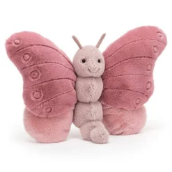 Jellycat’s Beatrice Butterfly is such a pretty, fluttery bug. Big and beautiful, she features three different shades of dusty pink, velvety soft, fur. Beatrice has a happy little face and soft antennae and is ready to listen to all your stories and adventures. She’s lovely and large at 32cm across and is wonderful as both a throw cushion and a cuddly soft toy.