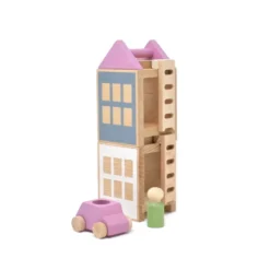 - Two houses, two ladders, one toy car, one peg person, one roof