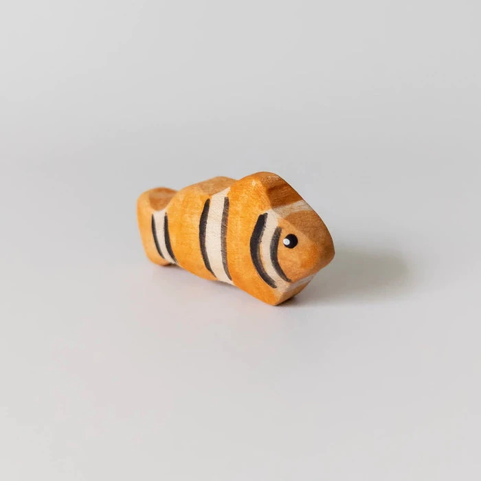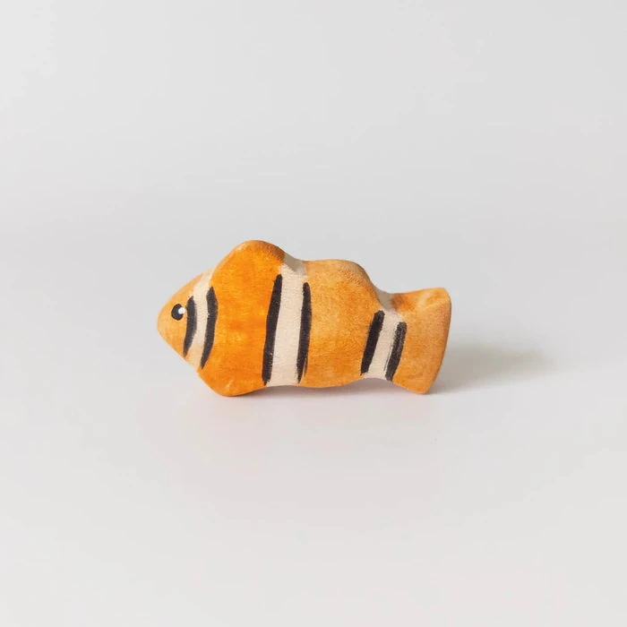 A very famous little fish! The NOM Handcrafted Clownfish features distinctive black and white stripes against a bright orange base.