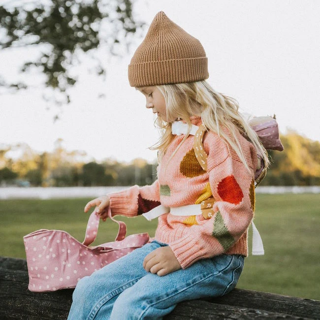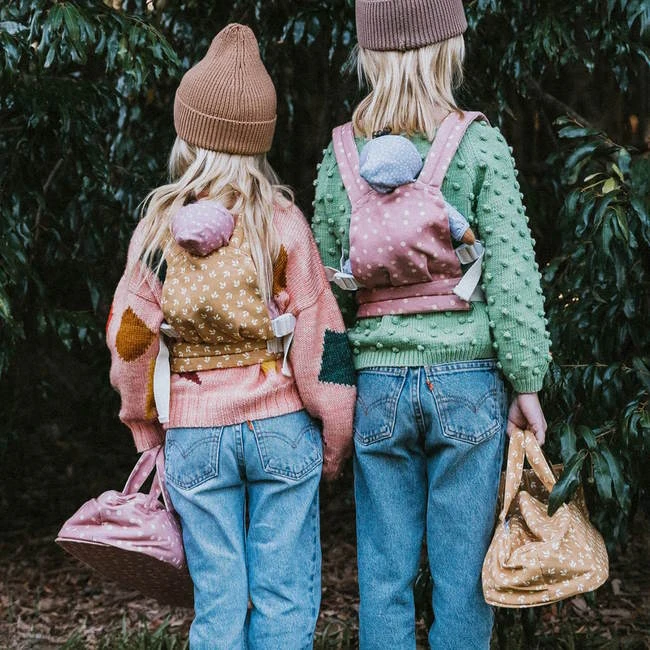 Your child will be able to take their favourite friend wherever they go with the beautiful Polka Dot Dinkum Doll Carry Cot from Olli Ella. Made from durable cotton canvas, the Polka Dot print features a blush pink base smattered with little pale peach polkadots. The Carry Cot has been designed to perfectly fit your child’s Dozy Dinkum or Cozy Dinkum Doll but their full-sized Dinkum Doll will also fit – it’s just a bit more of a snug fit!