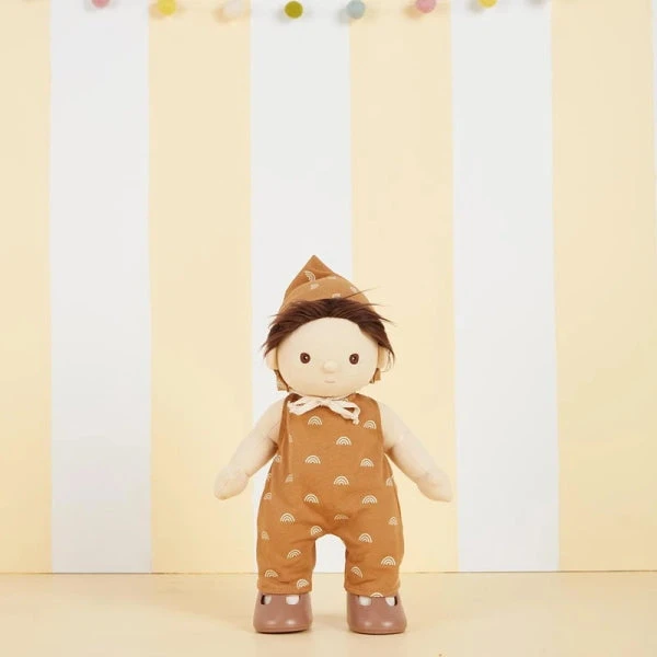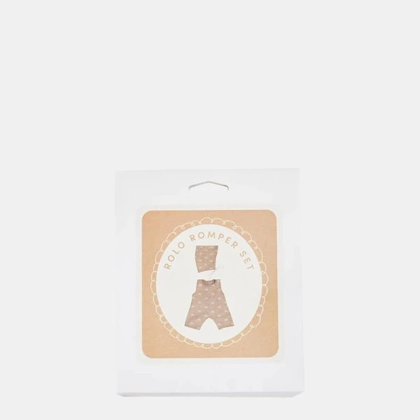 Olli Ella’s Dinkum Doll Cotton Rolo Romper and Bonnet Set in Fawn is the the most adorable outfit for your favourite dollie. It’s been printed all over in Olli Ella’s signature Dinkum Rainbow motif and has a base colour of gorgeous, rich, caramel.