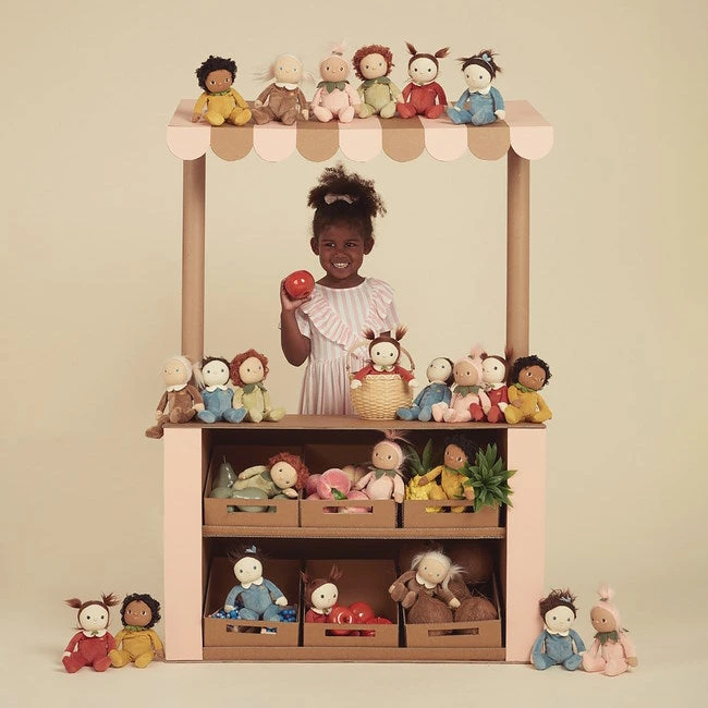 Your heart will melt when you hold the sweet Olli Ella Dinky Dinkum Fruity Cuties, as they snuggle floppily into the palm of your hand. Say hello to Annie Apple! She’s aΒ limited-edition, palm-sized playmate, perfectly weighted in all the right places, and outfitted in aΒ snuggly plush velvety cotton. The Dinky Dinkums are the smallest, sweetest snuggle companions.