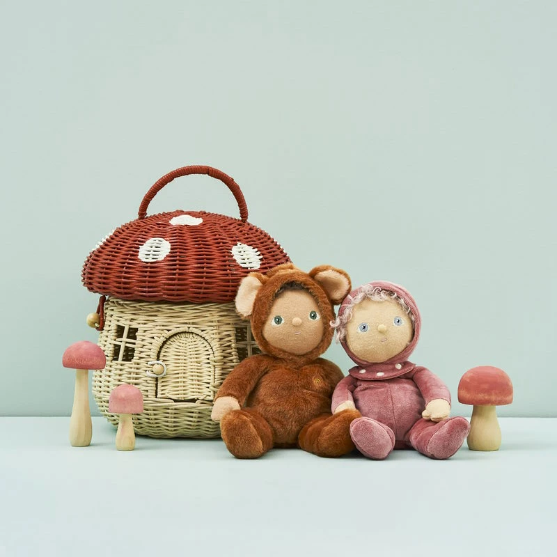 Be inspired to hide, play, forage, and dance in the woods when you hold the sweet Olli Ella Dinky Dinkum Forest Friends, as they snuggle floppily into the palm of your hand. Say hello to Tilly Toadstool! She’s a limited-edition, palm-sized playmate, perfectly weighted in all the right places, and outfitted in a snuggly plush velvety cotton. The woodland Dinky Dinkums are the smallest, sweetest snuggle companions.