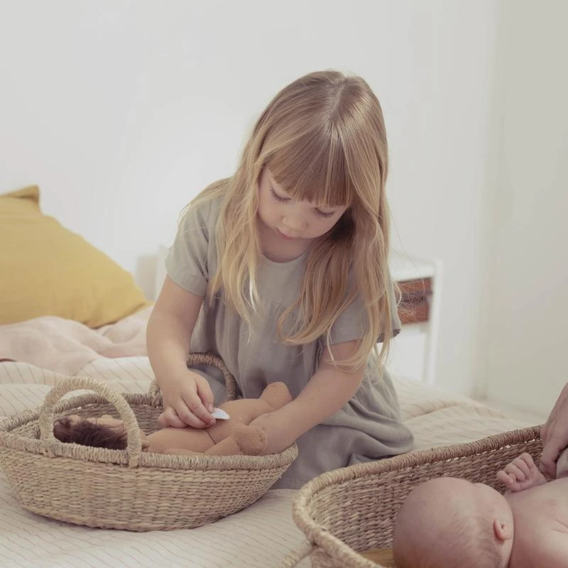 Olli Ella’s much-loved Nyla Changing Basket now comes in a size perfect for your child’s favourite doll. The Doll Nyla Basket is a miniature version, measuring 52cm long by 34cm wide and 9cm deep.
