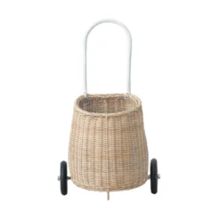 Possibly the most iconic of Olli Ella’s beautiful offerings, the very sweet Luggy Basket is a small wheeled basket with a pull handle, perfect for your toddler or small child. You’re looking at the Straw rattan version, a light natural wicker colour, which has a white handle.