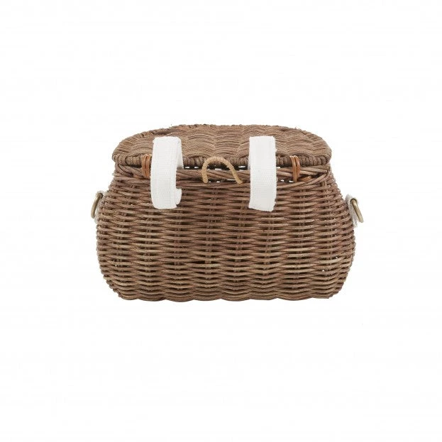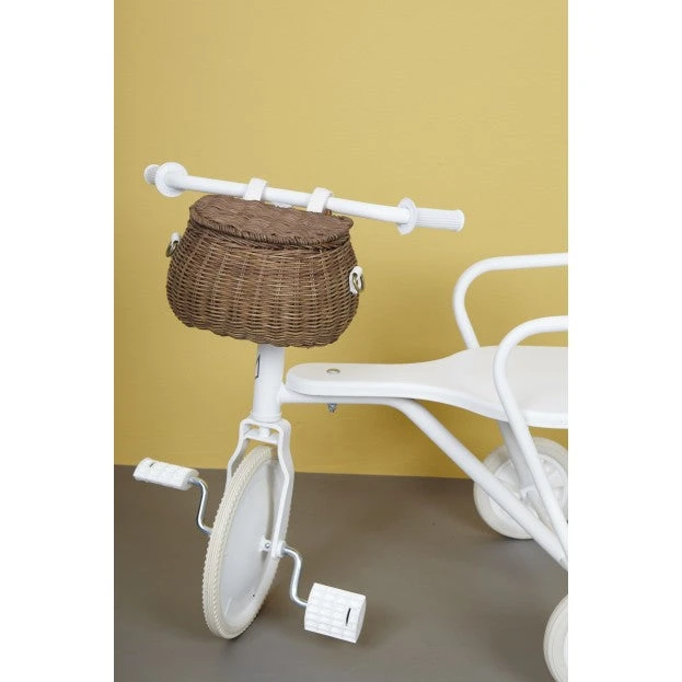 Super cute and super versatile, you can use Olli Ella’s Rattan Minichari Bag in so many ways. It has a little flap lid for easy access to the inside. Using the little removable and adjustable canvas loops, you can attach it to your child’s scooter or bike as the sweetest little woven bike basket. There’s also a rattan loop at the back for hanging off a hook, and a removable and adjustable canvas strap with brass hardware for wearing across the body.