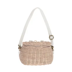Super cute and super versatile, you can use Olli Ella’s Rattan Minichari Bag in so many ways. It has a little flap lid for easy access to the inside. Using the little removable and adjustable canvas loops, you can attach it to your child’s scooter or bike as the sweetest little woven bike basket. There’s also a rattan loop at the back for hanging off a hook, and a removable and adjustable canvas strap with brass hardware for wearing across the body.