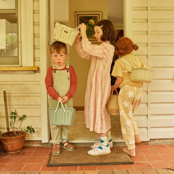The sweetest little picnic basket. Olli Ella’s Piki Basket in new Vintage Blue Rattan features a lift up lid and two white handles for easy carrying by small people. Take it shell-collecting, to the shops, use it around the house to store your pencils or treasures, or take it on a picnic.