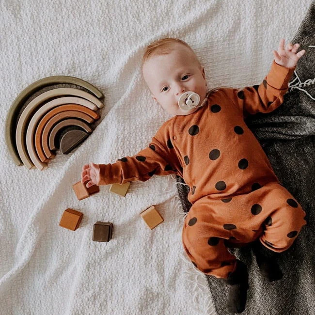 SABO Concept Rainbow Stackers comprise seven arches of gorgeous linden wood, stained in beautiful earthy colours. Each arch has rounded edges and corners and a velvety tactile matte feel, meaning they stack and balance easily.